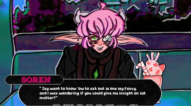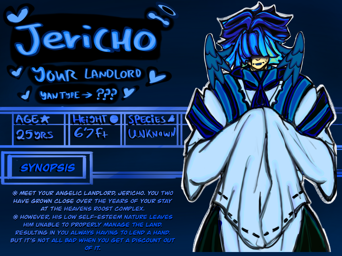 This looks promising! Really liked the demo, I enjoyed so much the pallets and the characters designs ^^ Would love to know more about the characters as the game progress! For now, I'm the most curious on Azzy and Jericho! Keep going! Would love so much to see more of them, you did a very good job thank you!!