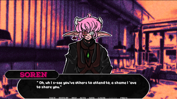 The art style is really nice, I love all the sprites and expressions! I especially like the stormy face Soren makes when he’s jealous and his flustered expression.