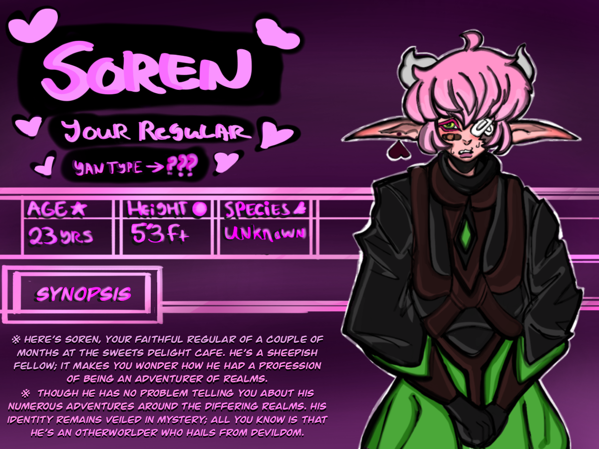 This is my first time learning about these characters, but I like how each one has a very distinct vibe and personality - which is also well reflected in their lovely designs and colour schemes. Soren is my favourite, he’s adorable and such a sweetheart! His way of speaking is really cute too. I replayed a few times just to see all his reactions!